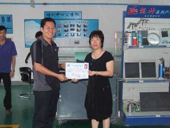彭經(jīng)理頒發(fā)“汽車車身修復(fù)技能認(rèn)證合格證書”