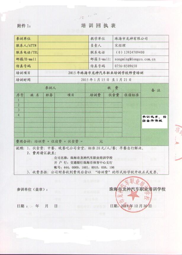 2、報名回執(zhí)表需在培訓開始前5日,回傳至我司。