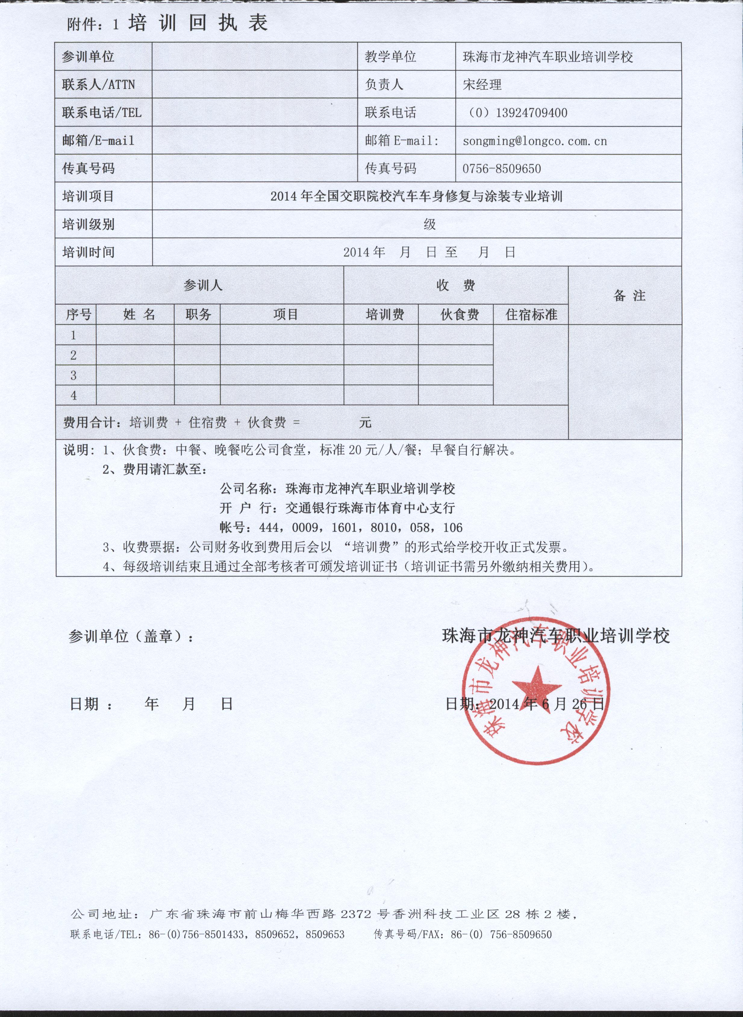 2、報名回執(zhí)表需在培訓開始前5日,回傳至我司。