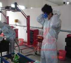 工具設(shè)備:油漆攪拌器、調(diào)漆工作臺、調(diào)漆稀料、電子稱、調(diào)漆棒、調(diào)漆杯、調(diào)漆尺、烘烤箱、測色燈箱 粘度計、漆膜測厚儀、光澤度儀、臉部應(yīng)急沖洗盆、噴槍清洗機 耗材及勞保:底漆固化劑、中途底漆、色母、面漆固化劑、稀料、一次性紙漏斗、對色卡、清潔無紡布 腹膜噴漆防護服、防漆霧眼鏡、標準雙濾芯面罩、抗稀料清潔手套