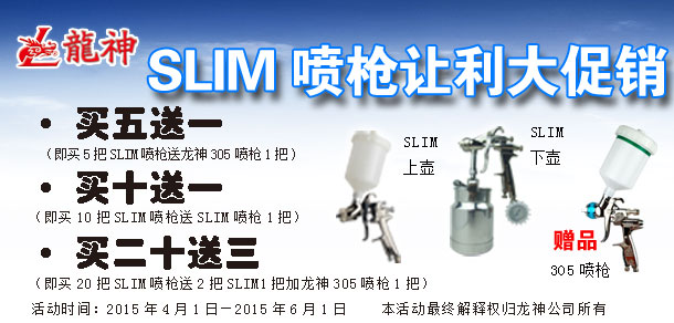 2013年10月至12月SLIM噴槍促銷方案 2013-10-12 11354 SLIM噴槍讓利大促銷,起始時(shí)間:2013年10月14日至2013年12月14日,時(shí)長(zhǎng):二個(gè)月。