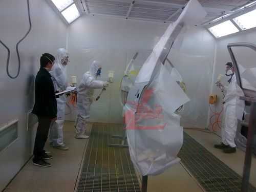 參賽選手統(tǒng)一著裝龍神贊助的噴漆防護進行規(guī)范化的調漆比賽